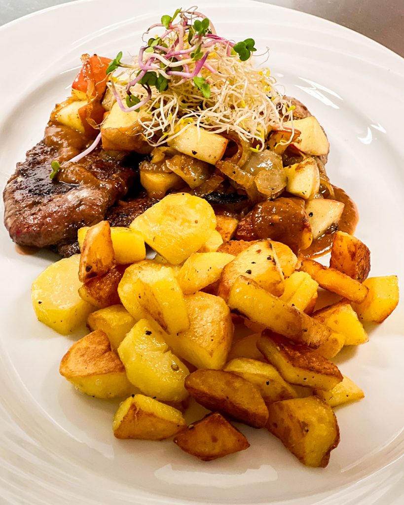 Neue Gerichte wie gefüllte Rinderfrikadellen, Beef Stroganoff und Rinderbraten mit Röstzwiebeln erwarten Sie ebenso, wie eine Weinkarte mit einer feinen Auswahl von Flaschenweinen.
